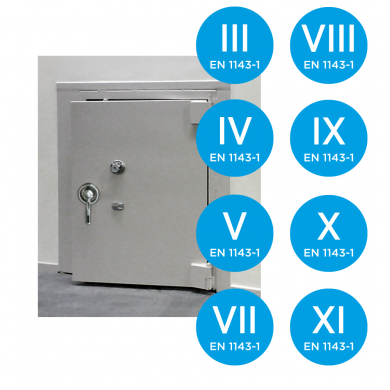 El número de pestillos, así como su diámetro, varían en función del nivel de seguridad y del modelo de puerta acorazada, oscilando entre un mínimo de 7 pestillos de 30 mm de diámetro y un máximo de 16 pestillos de 50 mm de diámetro.